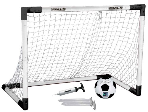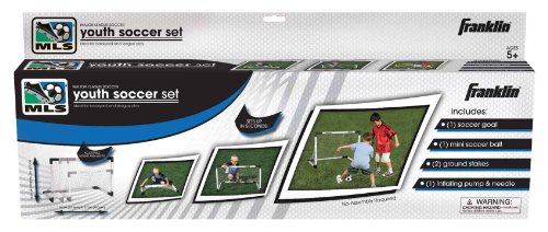 -. Binding : Misc. -. Brand : Franklin -. Feature : Dimensions: 26.5-37.5L x 16.5-24H in. / Polypropylene construction / Adjustable height and length soccer goal set / 2 ground stakes / Includes a soccer ball and inflation pump with a needle -. Label : Franklin Sports Inc -. Manufacturer : Franklin Sports Inc -. MPN : 14739P1 -. PackageQuantity : 1 -. PartNumber : 14739P1 -. ProductGroup : Sports -. ProductTypeName : SPORTING_GOODS -. Publisher : Franklin Sports Inc -. Studio : Franklin Sports Inc -. Title : Franklin MLS Youth Soccer Insta-Goal Set