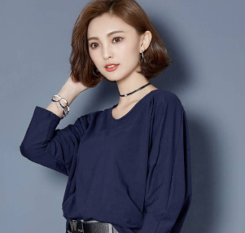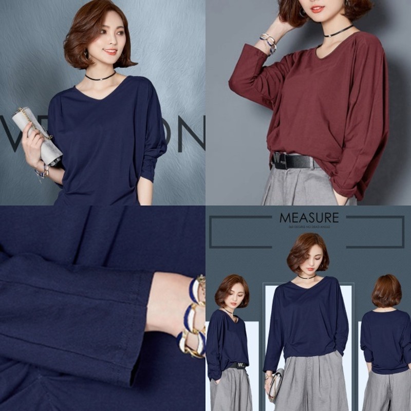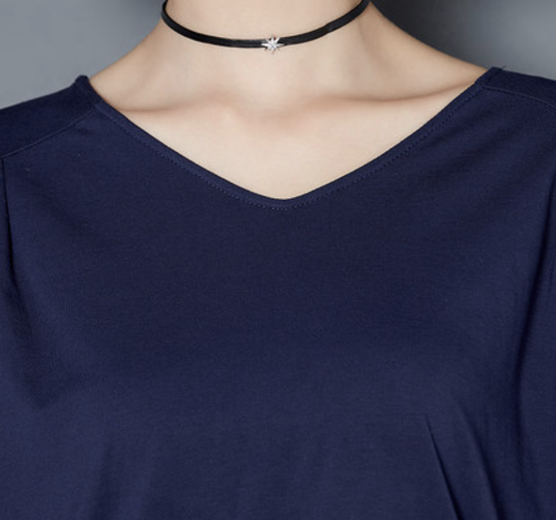 首元がV字にすっきりと開いたカジュアルコーデに取り入れやすいソリッドカラーTシャツです。
