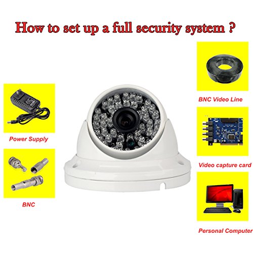 -. Feature : HD OUTPUT : It is CMOS 1200TVL security camera that used with HD mainboard. It is of very stable and good day night vision. It is suitable for all the common analog security system. / METAL HOUSING : This camera is metal housing that can be installed outdoor and indoor. It is IP66 waterproof. / 48 LEDS BACK UP LIGHTS: 48 Leds supply enough back-up light to make the night vision clear.(Color in day time,black & white in night time) / INNER IR CUT AND WIDE ANGLE LENS : IR CUT is the important parts to change day night vision automatically. Inner IR CUT can ensure change day night vision smoothly.This camra is installed with 3.6mm lens that wide enough to cover about 72°view. (It is depended on the using enviroment) / WARRANTY : As we are confident in our products, we supply 1 year warranty in parts and customer support. If there is any quality problem in this camera, we can supply parts to replace, and give customer support in anytime.If you still can not sure the how to connect this camera,please just please send the message to us. Thank you !