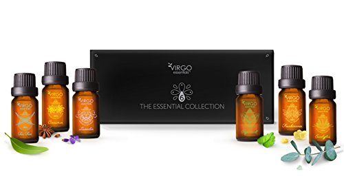 -. Title : Essential 6 Oils Collection, 100% Organic Cinnamon, Frankincense, Peppermint, Lavender, Eucalyptus, & Tea Tree Aromatherapy Oils + Bonus Blending Guide, Set of 6, 10 mL Bottles by Virgo Essentials