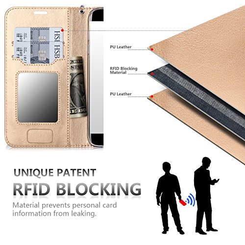 -. Feature : RFID Technique: Radio Frequency Identification technology, through radio signals to identify specific targets and to read and copy electronic data. Most Credit Cards, Debit Cards, ID Cards are set-in the RFID chip, the RFID reader can easily read the cards information within 10 feet(about 3m) without touching them. This case is designed to protect your cards information from stealing with blocking material of RFID shielding technology. / Unique design. Cosmetic Mirror inside made for your makeup and beauty. / Card slots provide you to put debit card, credit card or ID card while on the go. / High quality. Made with Premium PU Leather. Kickstand function is convenient for movie-watching or video-chatting. / Kindly Note: This product is sold exclusively by FYY US Tech. We never authorize any other seller or factory to produce or sell FYY brand products. All Products have INTERNATIONAL PATENTS. Only buy from FYY US Tech to get genuine FYY brand products with quality warranty.