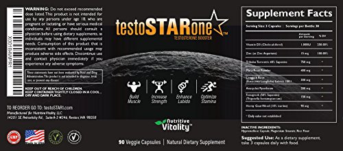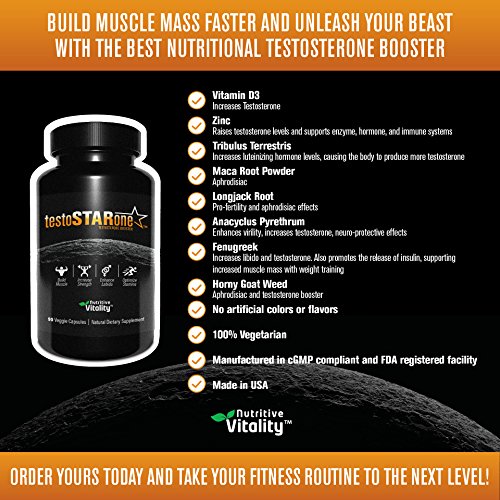 Nutritive Vitality testo-STAR-one - Natural Testosterone Booster - Fast Acting Supplement with Tribulus - Builds Muscle, Increases Strength, Boosts...