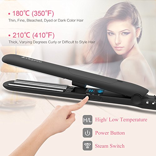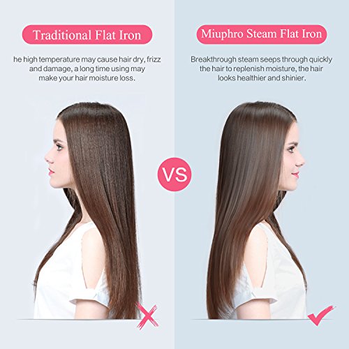 ★Shiny and Healthy Hair VS Rough and Dry Hair Traditional hair straightener makes your hair dry and rough because of high temperature, but our steam hair flat iron can replenish moisture while straightening your hair, effectively avoid dry and damaged hair and revitalize your lifeless hair.