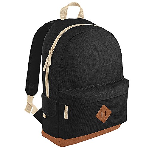 -. Feature : Retro styling. / Padded adjustable shoulder straps. / Padded back panel. / Zippered front pocket. / Side pockets.