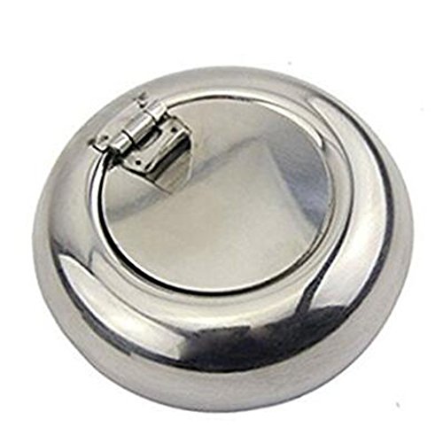 -. Feature : Made of stainless steel,modern design,easy to clean / Size:Diameter:10cm/3.9";Height:5cm/1.9";Cylinder diameter:5cm/1.9";Thickness:1mm/0.04" / Ashtray with Lid Cover Keeps Your Home Clean Away from Ash and Smoke / Light weight,easy to carry,suitable for outdoor or indoor / Perfect desktop or small table decorations,and fits inside a desk drawer for easy storage