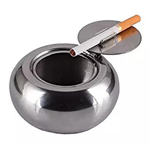 -. Title : LuckySHD Stainless Steel Ashtray with Lid and Cigarette Holder Modern Ashtray,Desktop Smoking Ash Tray for Home office Decoration-Silver