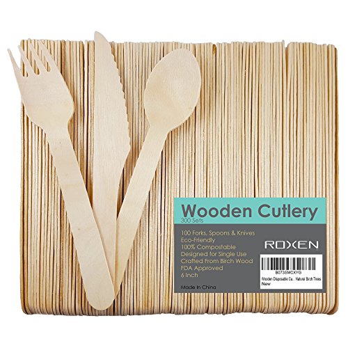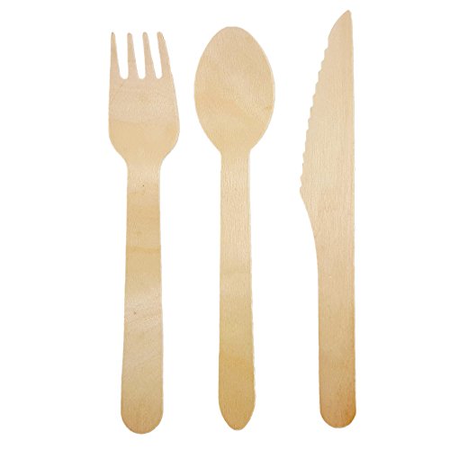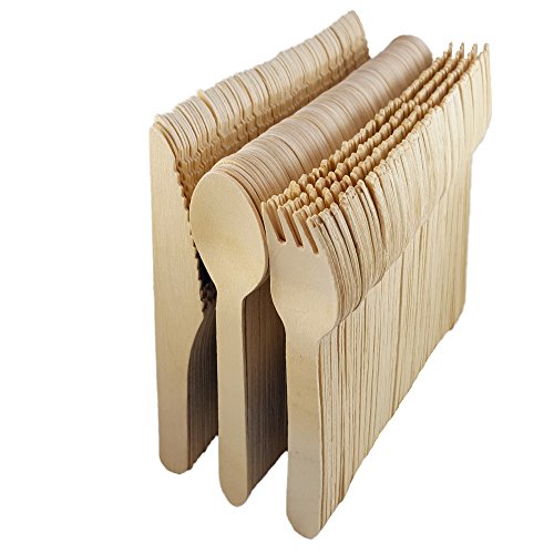 Disposable Wooden Cutlery | 300 Utensils Set | Eco-Friendly 100% Biodegradable & Compostable | 100 Forks, Spoons & Knives | 6 Inches Long | Crafted from Natural Birch Trees | BONUS FREE COOKBOOK