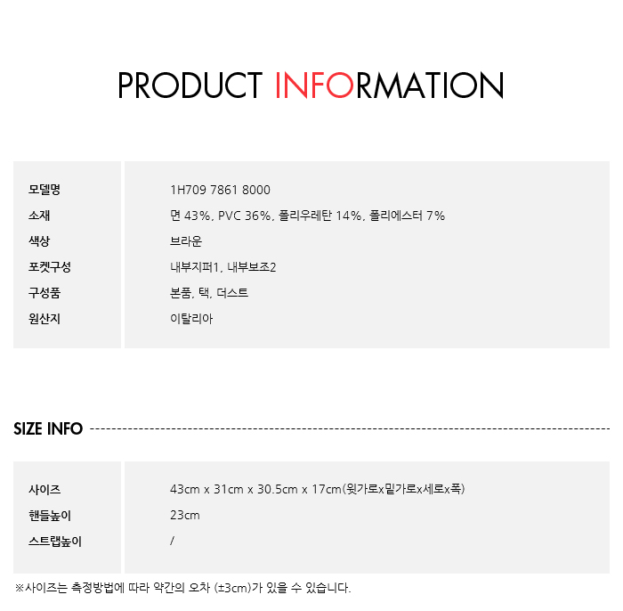 사이즈사이즈 : 43cm x 31cm x 30.5cm x 17cm(윗가로x밑가로x세로x폭)