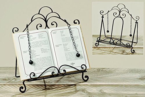 - KEEP YOUR COOK BOOKS EASY TO SEE AND REFER TO With weighted drop chains that have balls, this piece also features a gorgeous scroll work ledge that acts as a prop to keep books from slipping.