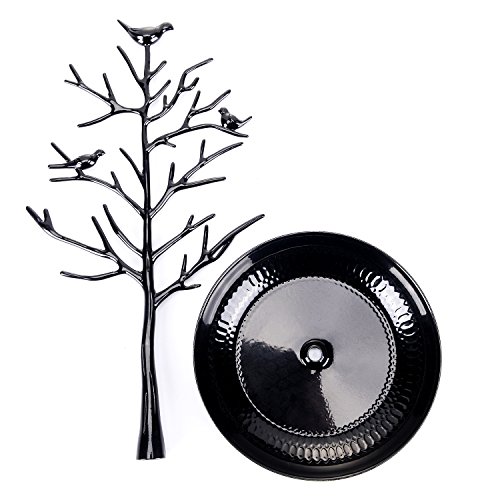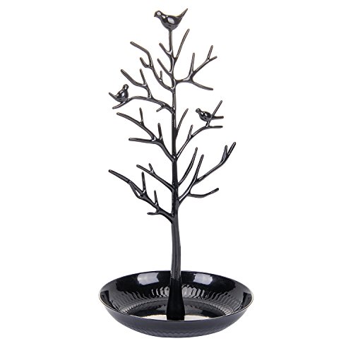 ChezMax Antique Birds Tree Stand Jewelry Display Necklace Earring Bracelet Holder Organizer Rack Tower Black