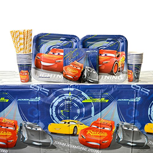 Product Description Start your engine! This Disney Cars Party Supplies Pack is the perfect party pack for a birthday party or racing fans! Bundle includes 16 dinner plates, 16 luncheon napkins, 16 cups, 1 table cover, and 24 Cedar Crate Market brand, FDA approved, biodegradable and chlorine free straws - straws made in the USA! 0