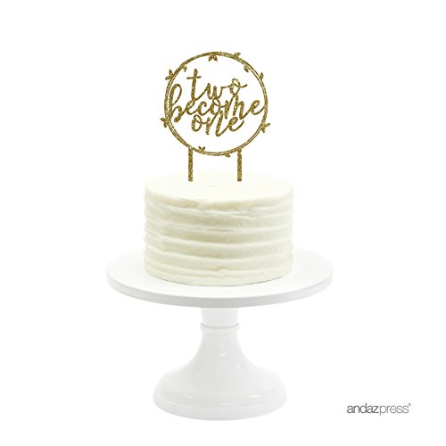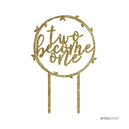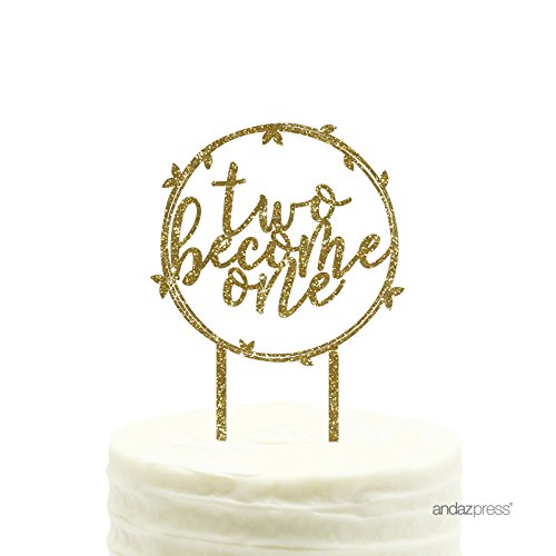 Andaz Press Wedding Acrylic Cake Toppers, Gold Glitter, Two Become One, 1-Pack, Vow Renewal Decor Decorations