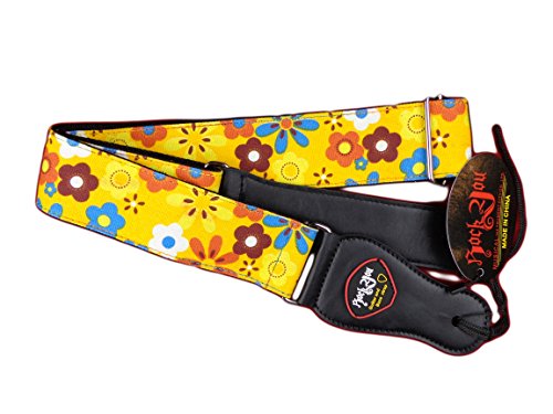 -. Title : New Flower Colored Hippie Acoustic Electric Guitar Strap Faux Leather Tabs