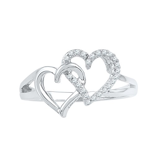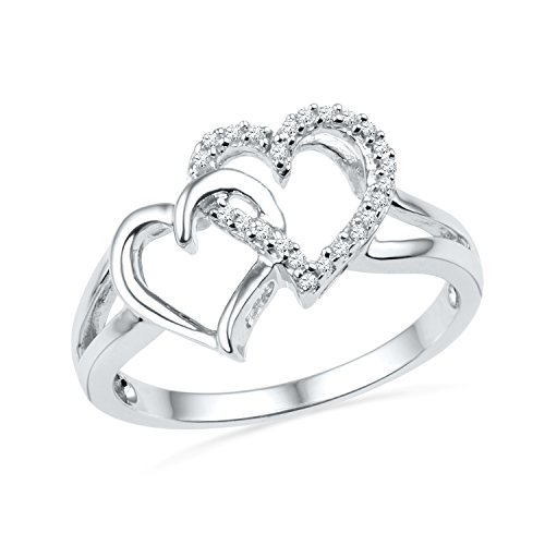 -. Title : Sterling Silver Round Diamond Double Heart Ring (1/10 Cttw)