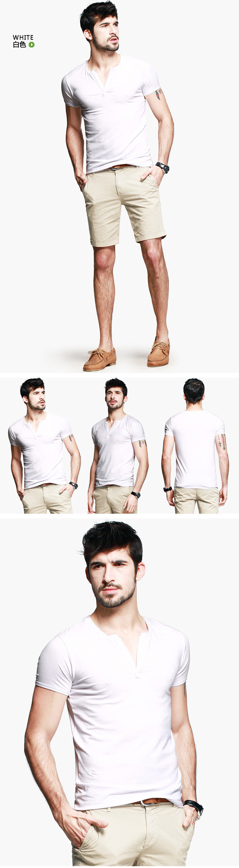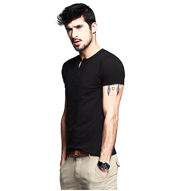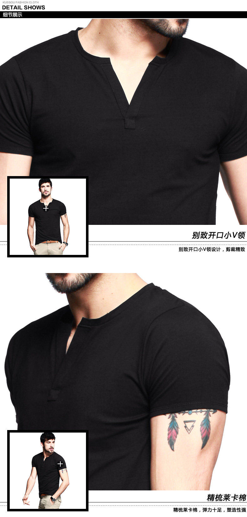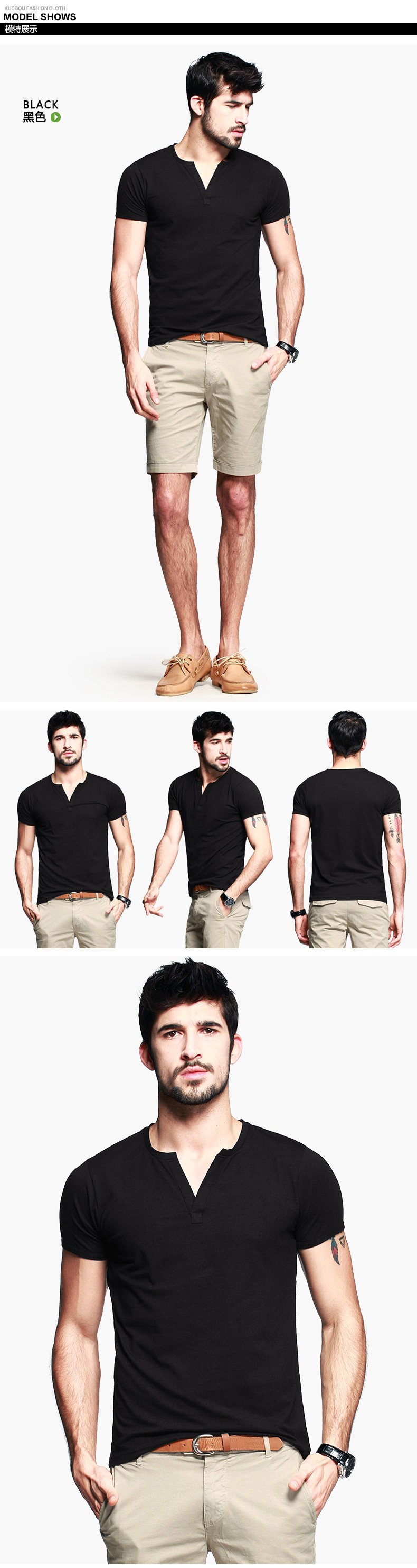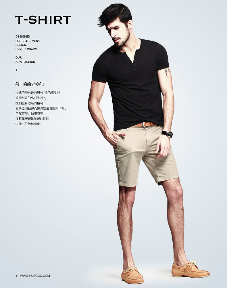 【KUEGOU】欧美简约V领 舒适爽滑莱卡棉 男式短袖T恤 男T恤HT-256