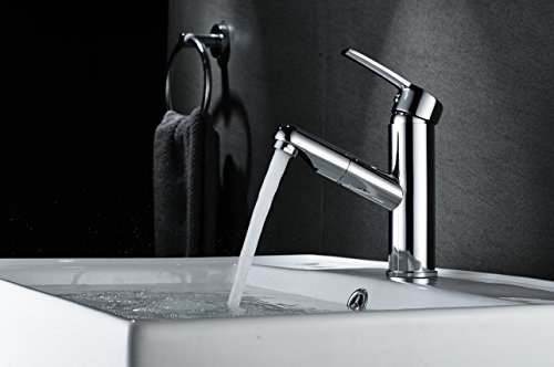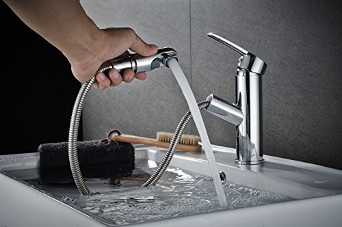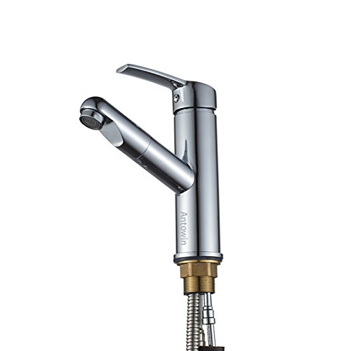 Antowin Hot&Cold Mixer Bathroom Sink Faucet, Stainless Steel Single Handle Pull Out Sprayer Kitchen Faucets Chrome Finish