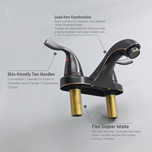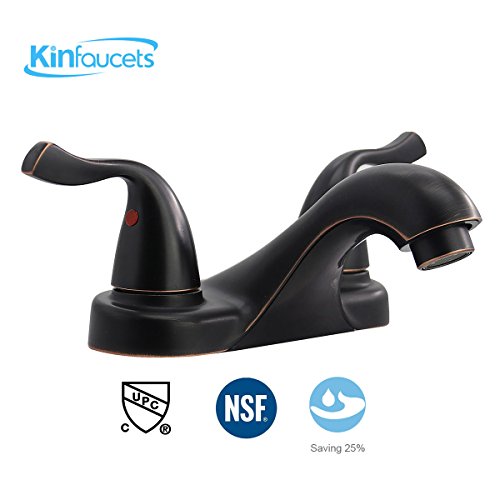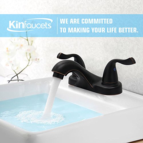 KINFAUCETS Bathroom Faucet, 2-Handle, Oil Rubbed Bronze, Low-Arch, Best Commercial, Mordern, Convenient, Lavatory, Bathroom, Vanity, Farmhouse