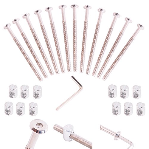 Eowpower 12 pack M6 x 4 inch Furniture Barrel Bolts, M6 x 0.49inch Barrel Nuts and 1 x Allen Key for Furniture, Cots, Crib and Chairs