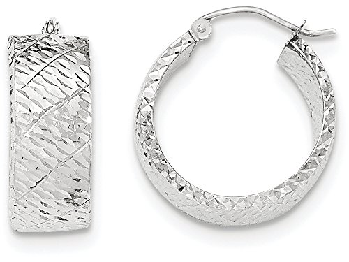 -. Title : 14k White Gold Bright Cut Hoop Earrings