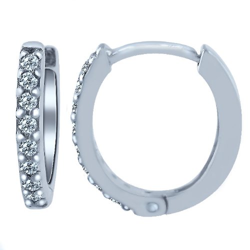 -. Title : Pave Diamond Huggie Hoop Earrings 14K White Gold (0.14cttw, I Clarity, I Color)