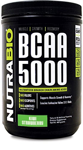 BCAA 5000 Instantized Branch Chain Amino Acids 400grams - KIWI STRAWBERRY Improves Protein Synthesis and Nitrogen Retention Speeds Muscle Recovery and Reduces Fatigue Boosts Muscle Growth Helps Preserve Lean Muscle NutraBio BCAA's are manufactured through the natural fermentation process and are 100% vegetarian. Standard BCAA's are made from either duck feathers or human hair; we do not use this process.