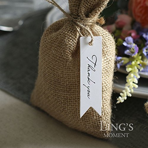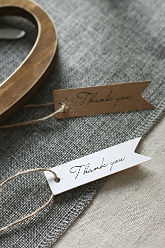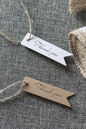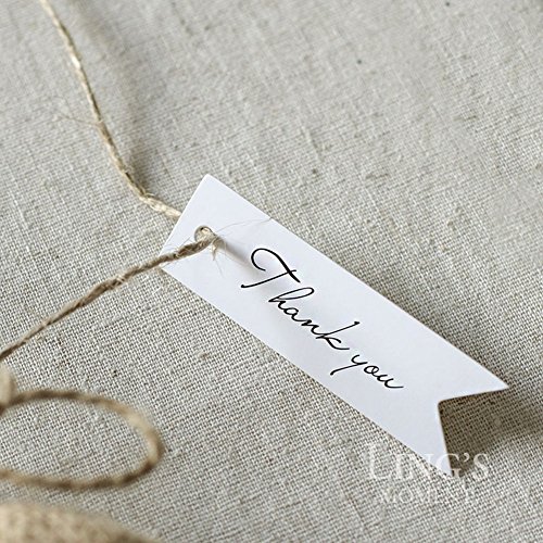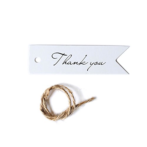 Ling's moment 100 PCS White Paper Gift Tags Bonbonniere Favor Rectangular Hang Tags with Free Natural Jute Twine,2.75" x 0.78", with Thank You Printed, Tags for Gift Packages or Wedding Favors(White)
