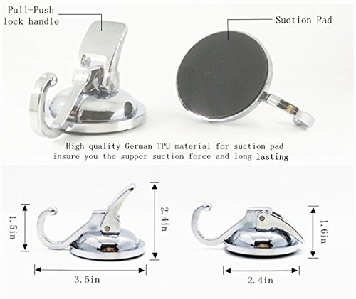 Studio : SUNYI Publisher : SUNYI Binding : Office Product Product Description Application Type: This powerful vacuum suction hook is a great choice for hanging your items such as pan or spatula in kitchen or coating or bag in restroom or items that less than 13Pounds. Materials Type: ABS plastic (Chrome coating) TPU rubber Product Size:L*H*W=3.4in*2.3in*2.4 Tips: Clean your wall before use. This hook works well for nonporous,smooth surfaces such as glass,mirror,polished metal or plastic board etc, won't work on bumpy,porous or rough surfaces,recommend to take it off and on every 5 months. 0