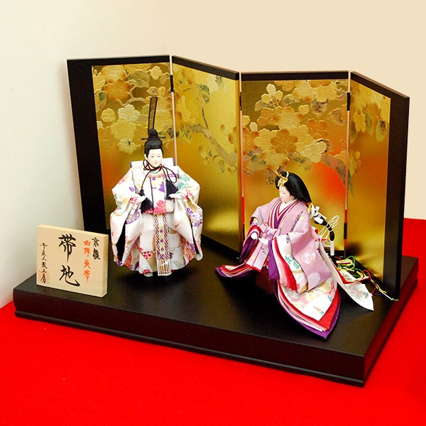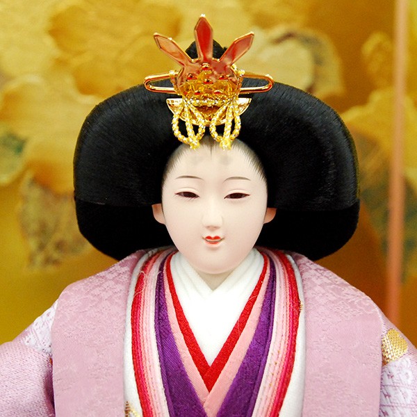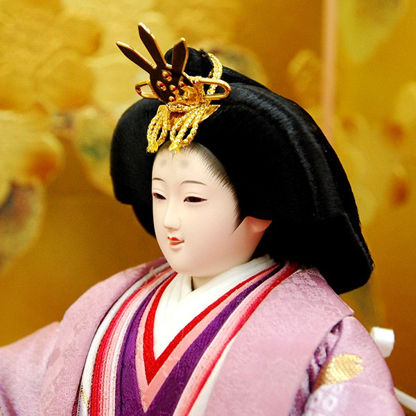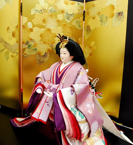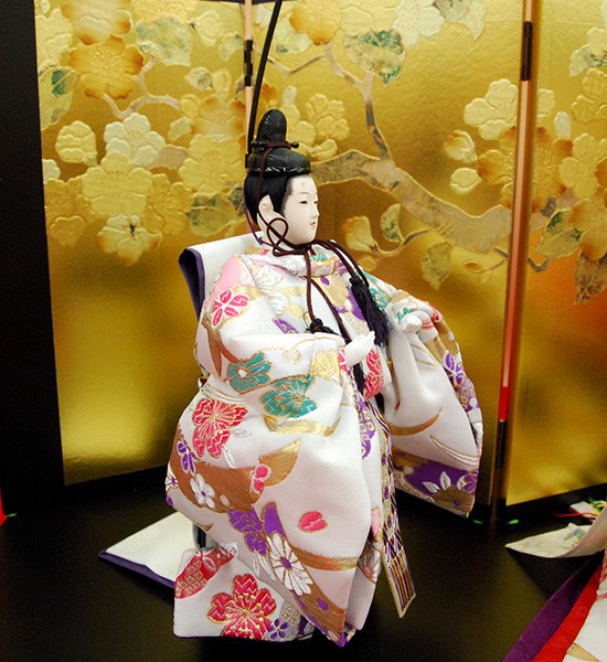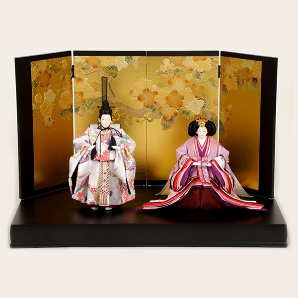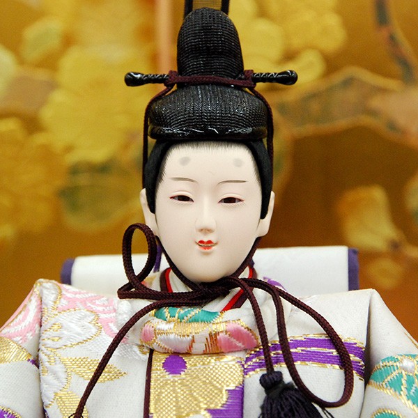 ・台座・屏風等には落ち着いた色目の雛人形セット。
