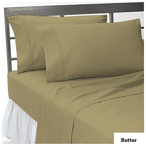 1- Piece - Fitted Sheet Solid 100% Egyptian Cotton USA BEDDING SHEETS 400 Thread Count 21-25 inches Deep Pocket Size King Butter Color .