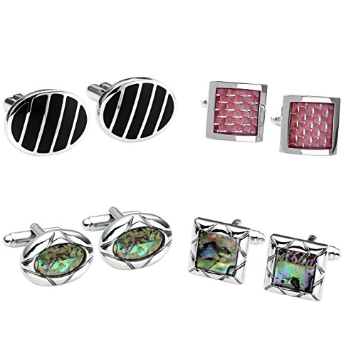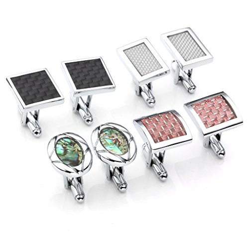 | Zysta 8pcs Stainless Steel Grid Shell Men's Classic Shirts Cufflinks Groom Wedding Business Shi... |