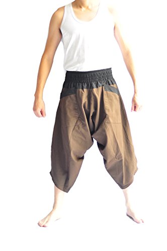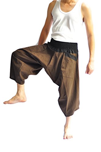 SIAM TRENDY MEN'S JAPANESE STYLE PANTS ONE SIZE BROWN TWO TONE