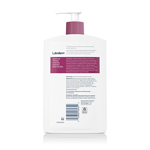 Lubriderm Advanced Therapy Lotion soothes and helps relieve extra-dry skin. From a dermatologist-developed brand, this lotion is clinically shown to help moisturize for a full 24 hours, and transform dry skin into healthier-looking, more resilient skin in just one week. The lotion with vitamins E and B5 plus skin-essential lipids naturally found in healthy skin replenishes and strengthens your skin's moisture barrier. This lotion is non-greasy with a clean, comfortable feel.Feature