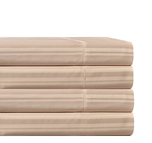 Pointehaven 510 Thread Count Pima Cotton Sheet Set, California King, Stripe, Camel