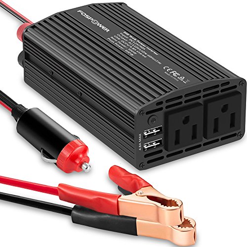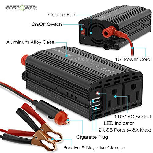 FosPower 300W Car Power Inverter Converter DC 12V/40A to AC 110V Dual Outlet with 4.8A Dual USB Outputs