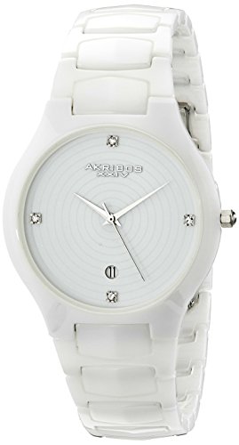 Akribos XXIV Women's AK516WT Slim Ceramic Watch with White Link Bracelet