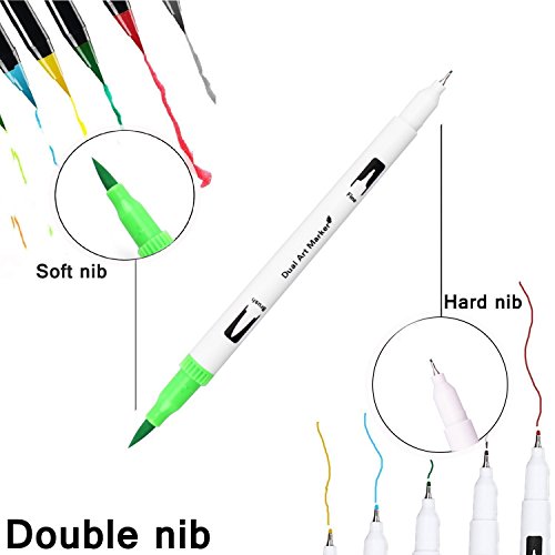 - PERFECT GIFT: The dual tip brush pens Could be used as colored pens, journal pens, planner pens, bullet journal, calendar, den journal, note taking pens, drawing pens, writing pens, sketching pens, coloring book pens, fine line markers pens. DIY whatever you want. Don’t hesitant to get a set.