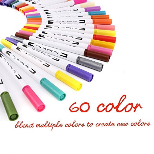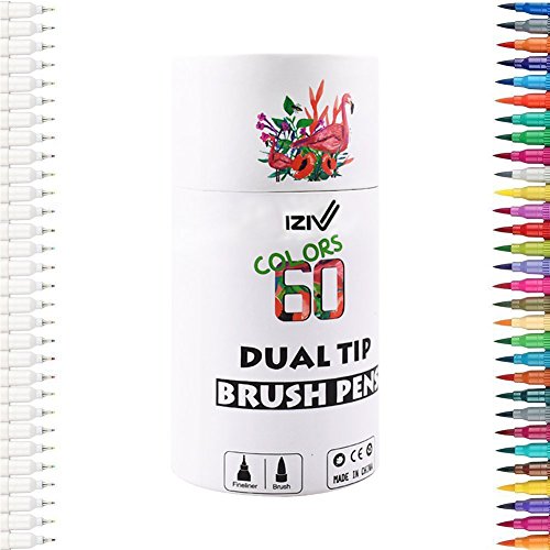 iZiv 60 Dual Tip Brush Marker Pens Set, Colored Pen Set Water Based Marker Highlighter Pens For Drawing, Arts & Crafts, Calligraphy, Shading, Coloring, Outlining, Scrapbooking & More