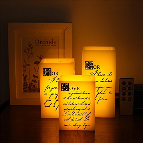 Flameless Candles,TurnRaise Square LED Candles 3 Colors Changing with 8-Key Remote Control & Timer for Wedding Party Birthday House Decoration,Set of 3