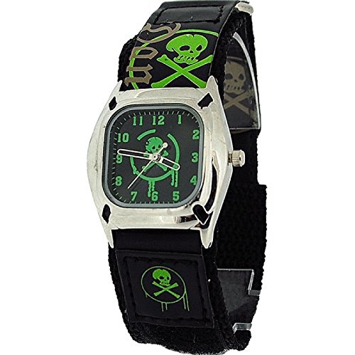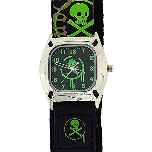 Great Looking On Trend Watch For Young Boys / Early Teens. With Danger Wording & Skull & Bones Motif This Watch Is Perfect As A First Time Watch Extra Strong Textile/Pu Leather Strap With Velcro Fastening Fully Adjustable Strap Size From 160Mm To 200Mm So Will Fit Most Ages Extended Life Battery (At Least 3 Years) Japanese Movement Manufacturers 12 Month Guarantee Please Note To Keep The Costs Down This Watch Is Not Boxed, It Comes In The Original Manufacturers Packaging A Clear Plastic SleeveFeature