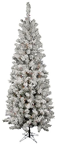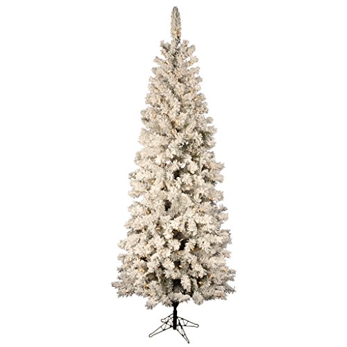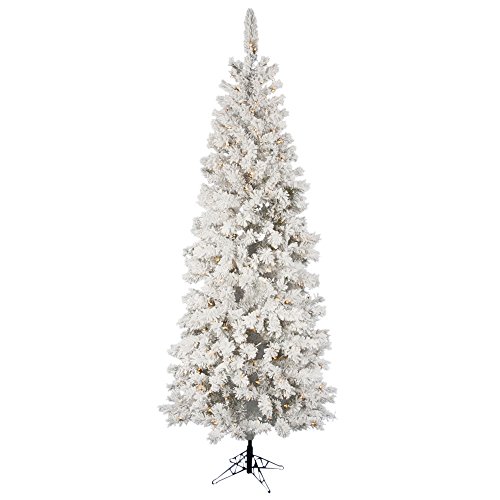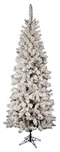 Vickerman Pre-Lit Flocked Pacific Tree with 400 Clear Dura-Lit Lights, 7.5-Feet, Flocked White on Green