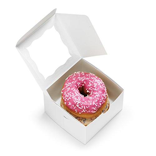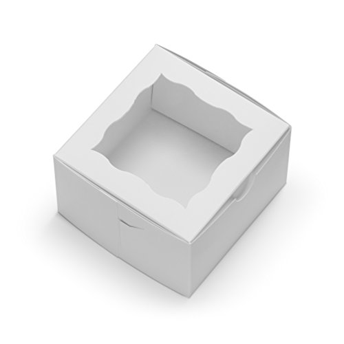 [50Pack] Bakery Boxes with Window 4x4x2.5" Cute Pastry Containers for Cupcakes, Wedding Cake/Baby Shower/Party Favors, Donuts, Desserts, Cookies (White)