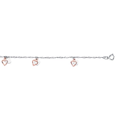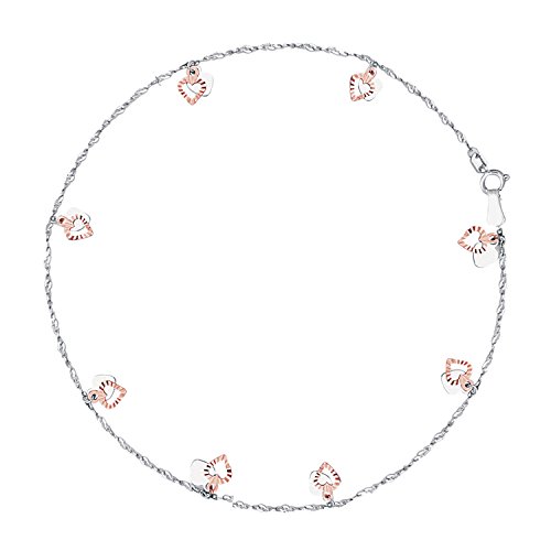 -. Feature : 14k White Rose Gold Fancy Heart Dangle Anklet Ankle Bracelet 10" Inches / Beautifully crafted and well designed. Two-tone anklet / Size: 10 inches long and Weighs about 1.7 grams / SP.R.Ing ring clasp for comfort and secuirty when worn / PICTURE ENLARGED TO SHOW DETAILS. SEE LISTING DETAILS FOR SIZE.