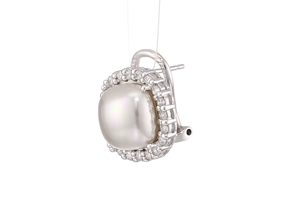 Majorica Sterling Silver Mabe Pearl, and Cubic Zirconia Earrings