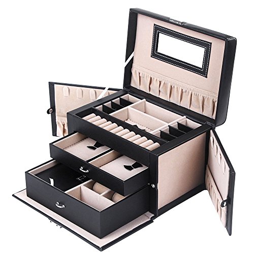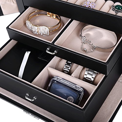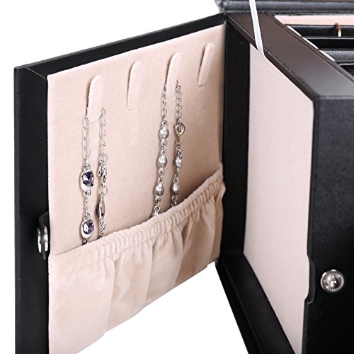 - TOP-NOTCH CRAFT: Made of quality black faux leather and soft beige velvet, this jewelry box is superexcellent to protect your beloved jewelry from scratch and damage