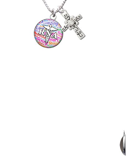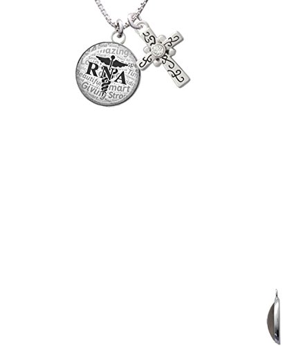 -. Binding : Jewelry -. Brand : Delight Jewelry -. Department : womens -. Feature : Glass Dome RNA - Registered Nursing Assistant - Scroll Cross with Crystal Necklace. / Glass Dome is approx: 0.9 x 0.7 x 0.2 inches (HxWxD) including loop. High quality P.R.Inted paper sealed under a glass dome in a metal frame. / Cross is approx. 0.84 x 0.54 x 0.07 inches (HxWxD) including loop. Antiqued scrollwork and center crystal give this cross a very graceful look. / 1.3mm Box Chain is 18" + 2" Extender. Lobster Claw Clasp. / Keep your faith close to your heart with this Scrollwork Crystal Cross Necklace. -. Label : Delight and Co. -. Manufacturer : Delight and Co. -. ProductGroup : Jewelry -. ProductTypeName : FASHIONNECKLACEBRACELETANKLET -. Publisher : Delight and Co. -. Studio : Delight and Co. -. Title : Domed RNA Scroll Cross Necklace, 18"+2"