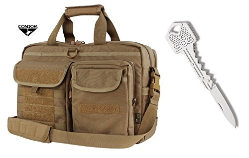-. Binding : Electronics -. Brand : Condor Outdoor -. Color : Brown -. EAN : 0740843778215 -. Feature : Constructed with Mil-Spec 500 Denier Cordura Nylon / Loop-lined Concealed Carry Pocket perfect for securing CCW holster & weapon / Rhino skin synthetic material on high abrasion zones / YKK zippers throughout / D-Rings on front & back for loose attachments / Lage Handle flap / Adjustable shoulder strap / Main compartment (12"H x 17"W x 4"D) with 2 mesh pockets & loop panel / One large storage pouch on front (9"H x 8"W x 2"D) / Back compartment (11.5"H x 16"W x 2"D) with padded, fleece-lined laptop & tablet sleeves with velcro secure tabs / Organizer pouch with hidden ID panel (9"H x 7"W x 2"D) / Free SOG Key Knife with purchase! -. Label : Condor Outdoor -. Manufacturer : Condor Outdoor -. PackageQuantity : 1 -. ProductGroup : PC Accessory -. ProductTypeName : ACCESSORY_OR_PART_OR_SUPPLY -. Publisher : Condor Outdoor -. Studio : Condor Outdoor -. Title : Condor Metropolis Briefcase (Brown) + FREE SOG Key Knife -. UPC : 740843778215