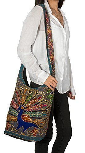 Tribe Azure Hobo Peacock Shoulder Bag Women Handbag Messenger Crossbody Casual Blue Sling Slouch Hippie