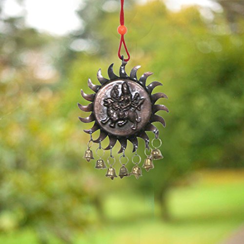 - Dimensions of this showpiece are: Length 8.5 cm X Breadth 1 cm X Height 18 cm and weighs approximately 30 grams. This window hanging decoration with bells background gives a regal appeal for home decoration, window, door lucky hangings, pooja room and curtain decor etc, wherever you want to spread a divine energy and good luck.