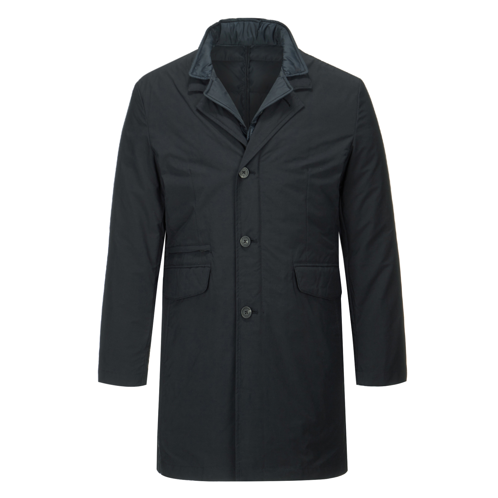 충전재를 사용한 남성 코트.