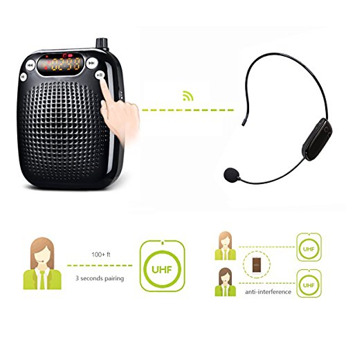 Wireless Amplifiers, SHIDU S611 Stable UHF Voice Amplifier 10Watts with 2000mAh Rechargeable Lithium Battery, Crystal Clear Sound for Teaching, Singing, Presentations and More (Black)